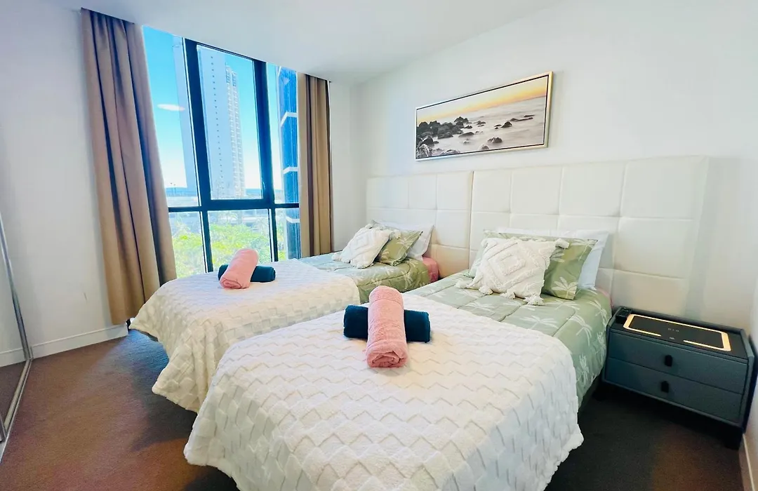 海辺の寝室2室のゴールドコーストThe Coastline Denアパートメントから歩いてたった6分離れたキング タッツ パット パットなどの市内の観光スポットに近い便利な場所にあります。 この80m²のアパートは、お客様の快適な滞在のためにプールとテラスを提供しています。